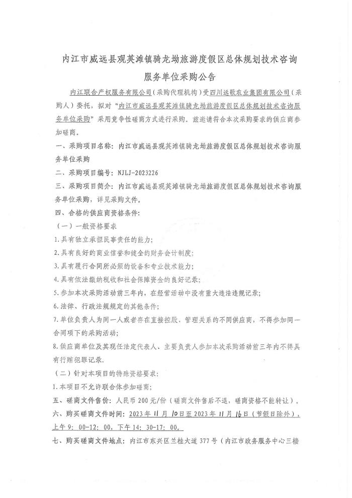 內(nèi)江市威遠縣觀英灘鎮(zhèn)騎龍坳旅游度假區(qū)總體規(guī)劃技術咨詢服務單位采購公告